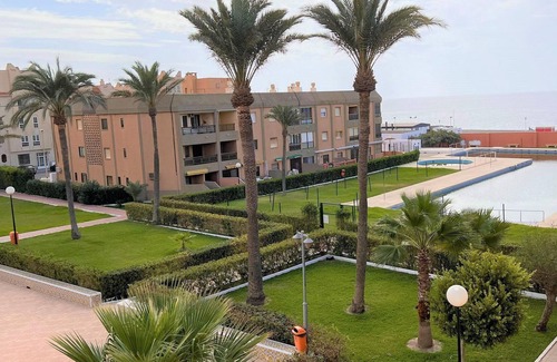Spectacular frontline beach apartment in Retamar that has air conditioning in the living room. You have access to the communal swimming pools (one for children, supervised by 2 lifeguards) and there is plenty to do in the area. Ideal for sun holidays with the family. The holiday home has a great location on the Spanish 'playa', 100 m from the bus stop so that you can easily go in all directions. For example, consider a trip to Almería, a 45-minute bus ride away, or keep it close to home and discover the beautiful Cabo de Gata natural park (200 m walk from the house). The apartment is very close to the leisure area with bars, restaurants, and nightclubs (Plaza del Mar). The holiday home offers its guests WiFi and a private kitchen so that you can independently prepare the most delicious dishes. You also have access to 2 tennis courts, a futsal court, and a basketball court.