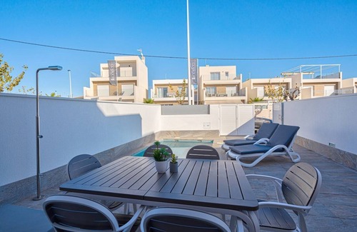 Modern villa in San Pedro del Pinatar, Murcia, Spain with private pool for 6 persons. The house is situated in a coastal area and at 4 km from the beach.