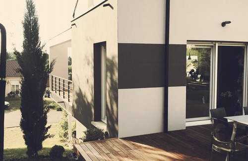 Architect designed villa at the gates of the cities of Metz, Amnéville and Thionville, in a village with all amenities. Luxembourg 40 km. 200 m2, 9 ares, wifi included, large fitted kitchen open to the 50 m2 living room. 40 m2 balcony and 30 m2 terrace overlooking lovely garden. Very important: NO SMOKING and no animals.