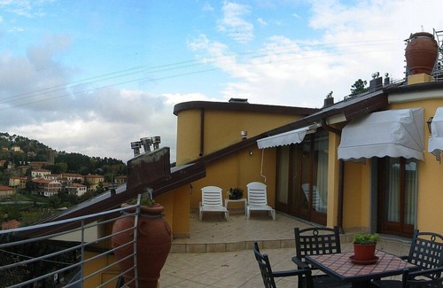 Villa Floriana B is an elegant and welcoming apartment immersed in a splendid landscape, in the heart of a wonderful little town. It sleeps four people. From Villa Floriana B you will enjoy a broad view of the valley and of the greenery. Villa Floriana B is 40 square meters (430 square feet). It features a shared swimming pool, two panoramic private terraces, a shared garden, air conditioning (please read description below to check in which rooms the units are installed), winter heating and WI-FI Internet access.