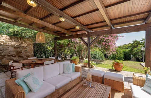 The property is endowed with very large spaces both externally and internally, suitable to comfortably accommodate up to 9 guests. In fact, the villa is entirely surrounded by a spacious, well-kept garden carpeted with flowering oleanders that contribute to filling the air with the fragrances and aromas typical of the Mediterranean maquis. To allow guests to enjoy their contact with nature and to spend pleasant moments of conviviality, the outside area has a lounge area with comfortable sofas and a dining table as well as a barbecue area.
