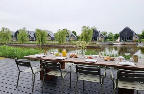 This luxury villa with its own jetty in the Frisian town of Balk is very suitable for holidays with the family. From the villa you have a direct connection to the Frisian Slotermeer. The water villa has a spacious living room with a comfortable seating area, a smart TV and a spacious dining table. The furnishings are very modern. The villa has a downstairs bedroom with an ensuite bathroom. Upstairs there are 3 bedrooms, 1 with an ensuite bathroom and a separate bathroom. So a lot of luxury and privacy. Balk, located in the Frisian Lake District, is characterized by its historic center located on the Luts River, part of the Eleven Cities Route. You can shop extensively along the canal or sit at one of the cozy terraces. The unique villages along the Elfstedentocht route are also definitely worth a visit. The open kitchen is part of the living room and is equipped with luxury appliances. Through the French doors in the living room you can easily reach the garden with a lovely terrace on the water.