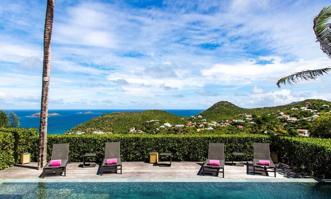 Splendid villa designed by architect Johannes Zingerle, 2475ft2 approximately, opened on both sides with the swimming pool on one side and a basin on the other. Villa Lina is located in the heights of Colombier, offering a superb view over the waters of Flamands beach as well as a quick access to one of the most beautiful beaches of the island, Colombier. Saint-Jean and Gustavia are 10 minutes away.