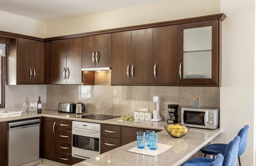 Designed with both style and practicality in mind, the villa features a bright and airy open-plan living space. The modern lounge is a welcoming retreat, complemented by a spacious dining area and a fully equipped kitchen with a breakfast bar, making it a pleasure to prepare and share meals. Large patio doors let the light flood in.