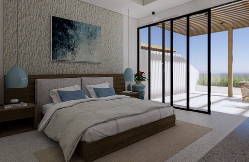 A secluded haven with panoramic ocean views, king-size bed, walk-in wardrobe, and spa-inspired ensuite with freestanding terrazzo soaking tub and al fresco rain shower. Private terrace ideal for sunrise yoga or twilight reverie.