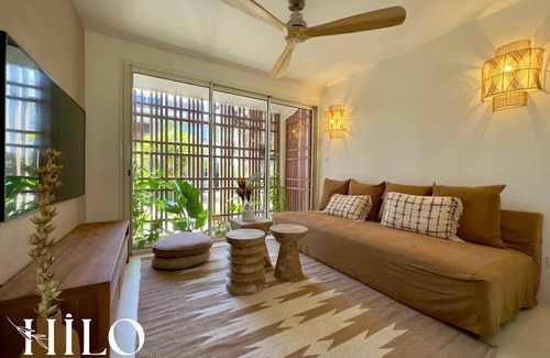 The HILO Villa La Réunion Nomade is a fully renovated villa ideally located in a vibrant, commercial neighborhood, just a few meters from the sea and its beautiful sandy beaches. It features three lovely bedrooms, each with its own en-suite bathroom. The spacious living area on the ground floor includes an open kitchen and a massive terrace overlooking a private garden. Residents of the Nauticlub have access to a communal pool as well.
