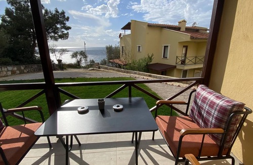 Pelitkoy beach is in the aquarium bay. In addition to being in touch with the sea and nature, there is a market, a public beach and a paid beach cafe.On the ground floor of our villa, there is a very large veranda and garden area, and there is a living room, kitchen and WC area.