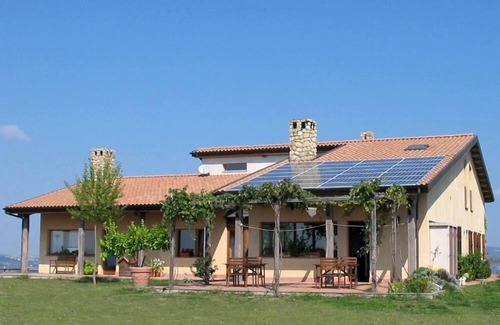 The villa is situated at the center of an estate of about 3 acres on a hill from which you can admire a 360 ° panorama that spans three regions of Tuscany, Umbria and Lazio in a pristine natural environment and very quiet. The property was built according to the criteria of bio-architecture and is located just 10 km from the Baths of San Casciano dei Bagni and the border with the Natural Reserve of Monte Rufeno.