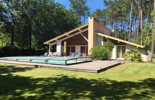 Ideally located in a quiet countryside area under the pines, pleasant villa that can accommodate 10 people with a very sunny terrace, a large secure 9.50 x 3.80 swimming pool and a pleasant garden of 4458m². Bike path from the villa. Everything is there for a great holiday!