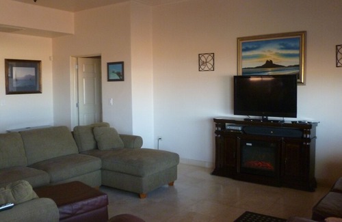 This vacation home is located in Marina Real, a neighborhood in San Carlos, and is in the mountains and near the beach. Marina San Carlos and San Carlos Golf Course are worth checking out if an activity is on the agenda, while those wishing to experience the area's natural beauty can explore Islands and Protected Areas of the Gulf of California and Cerro Tetakawi. Be sure to check out the area's animals with activities such as game walks and birdwatching. Marina Real #110 is an upscale single-family home within a short walking distance to the breath taking bay and sandy beach. (approximately 100 yards to the private beach) The home has travertine tile throughout and a lovely fully equipped kitchen with refrigerator, gas stove, dishwasher and microwave, coffee makers, blender and toaster. The laundry room is located right off the kitchen with washer, dryer and utility sink. The kitchen has beautiful granite counter tops and a breakfast bar that seats 4. The adjacent dining room seats 8. There is also a half bath right off the great room.