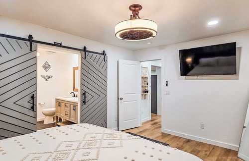 Behold The Duchess Den, your very own slice of paradise in Porum Landing | Duchess Creek. With an exquisite 4-bedroom, 2-bathroom design, this place is more than just a house - it's a "wow" experience for up to 9 lucky guests. Step inside and prepare to be dazzled by the chic decor and meticulous detailing. The fully-furnished kitchen and dining space are just waiting for you to create culinary masterpieces. And did we mention the breathtaking lake views and direct water access? Spoiler alert: it's pretty amazing. Accommodations? We've got them in spades. Our master bedroom is the stuff of dreams, complete with a king bed, ensuite bathroom, double vanities, and a spa tub. It's perfect for those post-lake lounging sessions. The other three bedrooms? Equally fabulous, each with unique features that cater to your every need. The interior screams modern bohemian chic with a side of comfort. Think open-concept kitchen with a bar, a dining table for four, and a fully-equipped kitchen. But wait, there's more! Our living room has a sectional sofa and a convertible coffee table, perfect for those impromptu dinner parties or game nights. And did we mention the play area for the kids? We've thought of everything. The outdoor space? Let's just call it your personal oasis. With an expansive deck, a gas grill (propane included), fire pit, and ample seating, it's the perfect spot to relax, dine, and enjoy the lake views. During your stay, we've got you covered with free Wi-Fi, Smart TVs, and even an air hockey table for the competitive spirits. And if you're looking for a little extra, we offer additional services like grocery delivery, private chefs, in-home massages and more. The Duchess Den | Porum Landing is your ultimate destination for unforgettable vacations. So, why wait? Book now and let the adventure begin! PS: We've got two Ring cameras for added security, and a starter supply of necessities to ease you into your vacation. Enjoy!