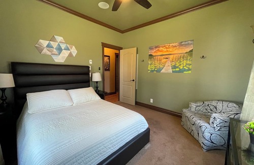 There is a full size bed, 2 twin beds, a futon with memory foam topper, and a cot. There is a large open room for extra sleeping area if you provide your own beds/bedding. There's also space to set up tents or trailers. Price listed here is for overnight accommodations for only 7 people so any additional people, up to 15, will be for additional fees. Please note there is only one bathroom in THE Wellness Centre. THE Tranquility House is also available to rent right next door with 3 queen beds, hide-a-bed, bathroom, and kitchenette if wanting to rent that space also.