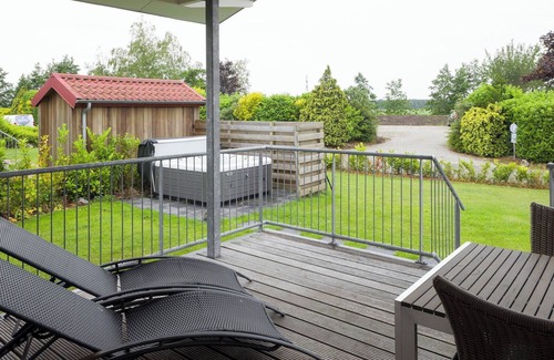 The villa has a veranda with patio furniture, lounge set and in the garden there is a patio and an outdoor hot tub. In addition, the villa has its own jetty.
